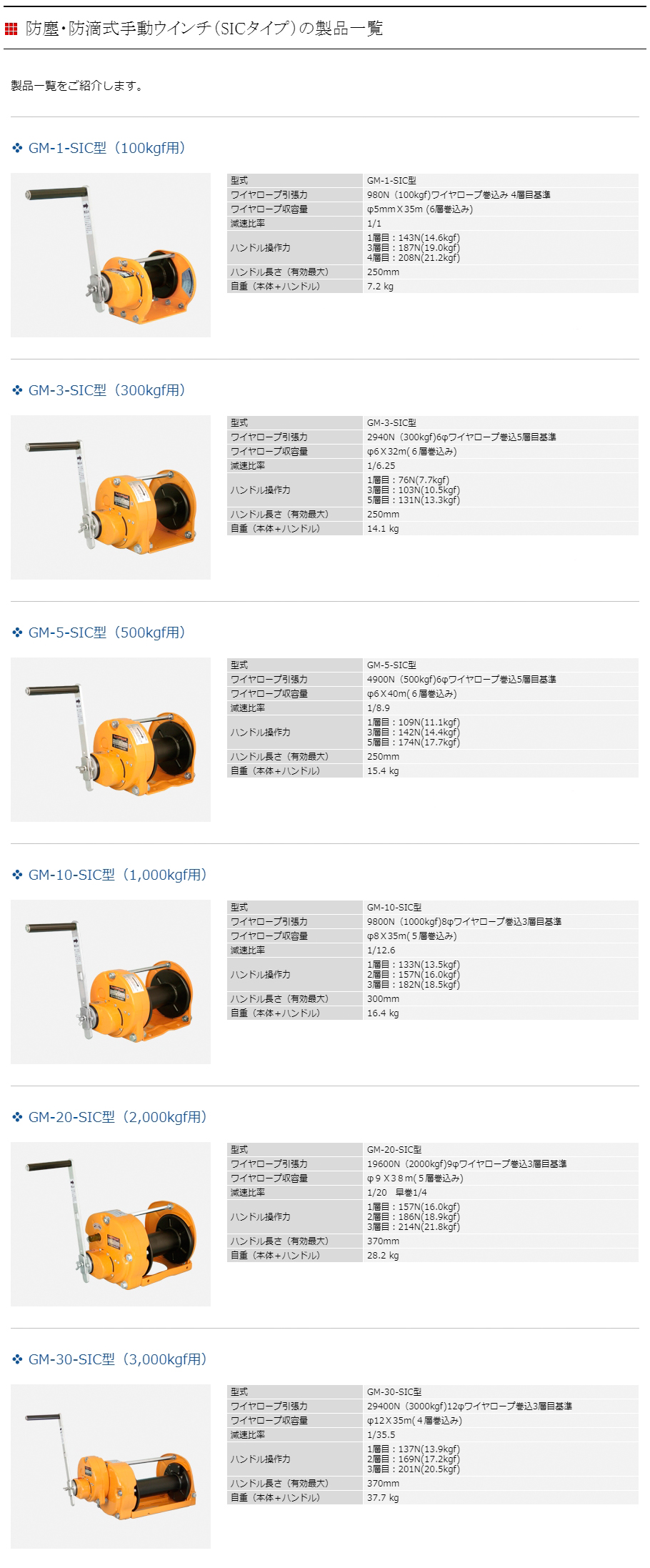 MAXPULL防塵防水手動絞車GM-20-SIC型(2,000kgf用)