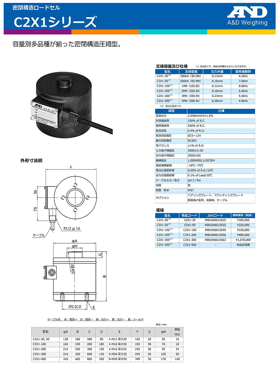 AND(A&D)負(fù)載傳感器C2X1-500