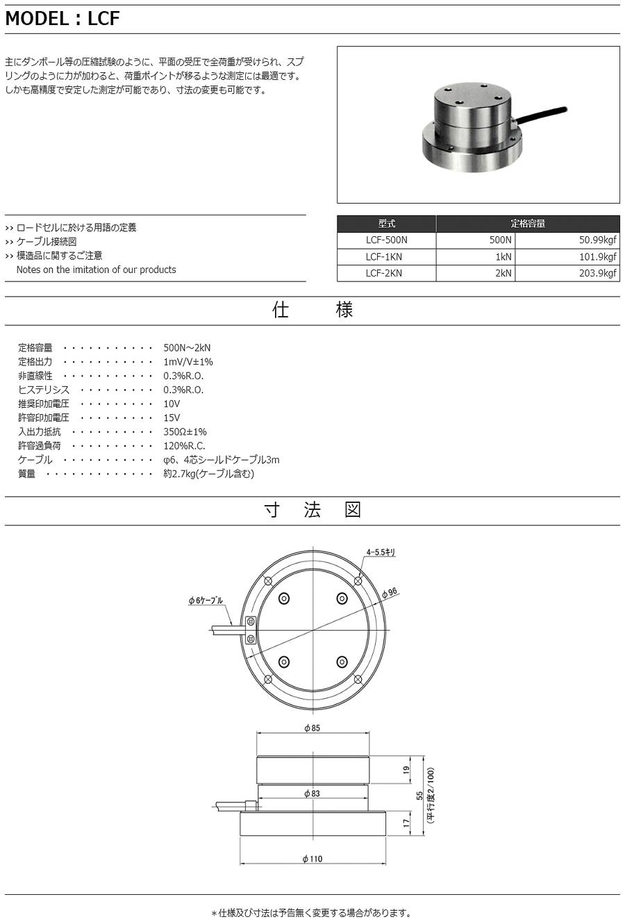 特殊測器荷重傳感器LCF-500N