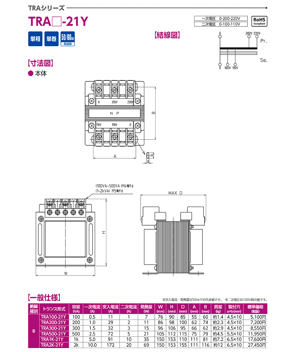 東洋技研變壓器TRA2K-21Y