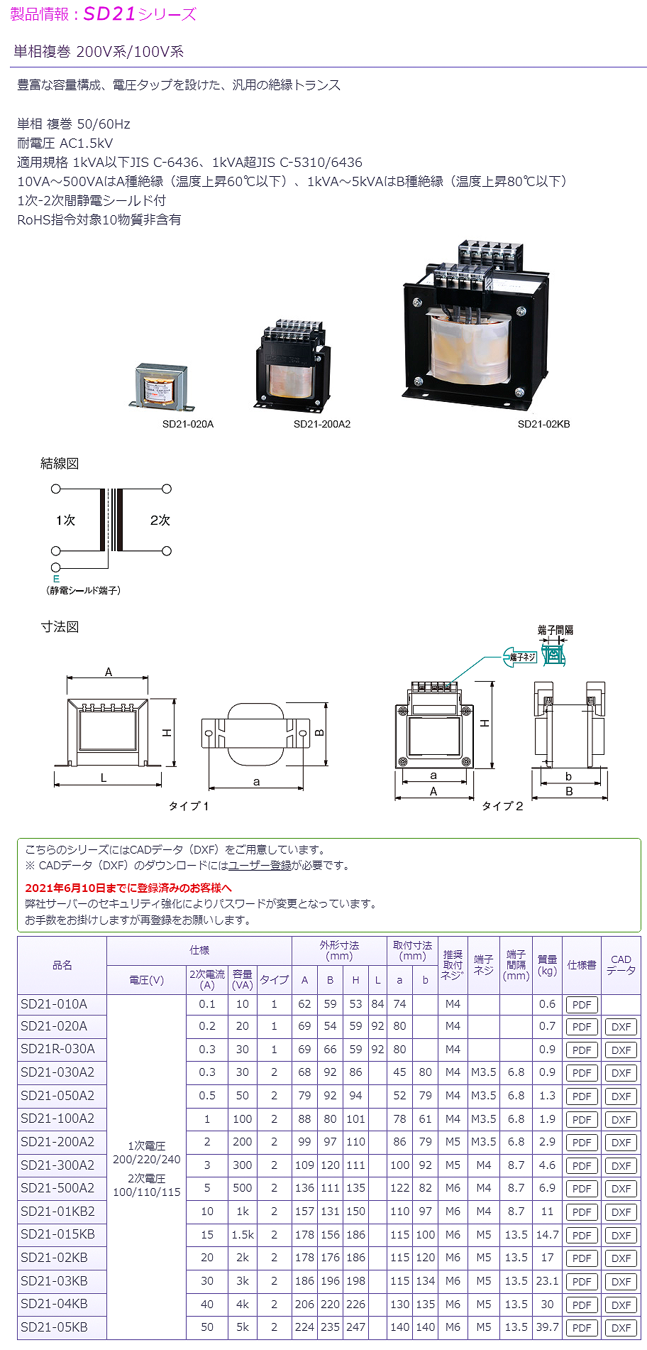 豐澄200V/100V變壓器SD21-010A