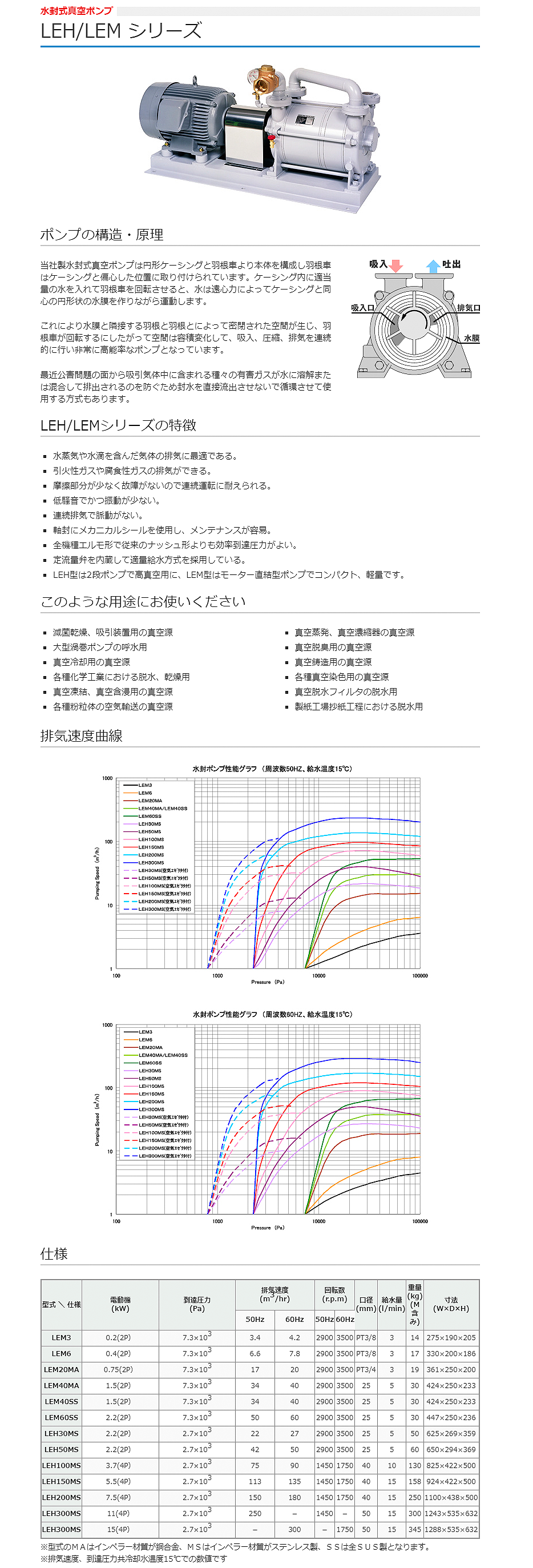 樫山工業(yè)水封式真空泵LEH150MS
