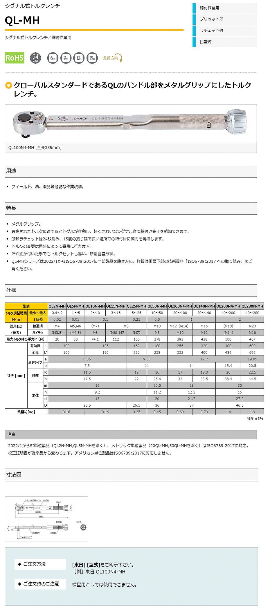 東日制作所扭力扳手QL2N-MH